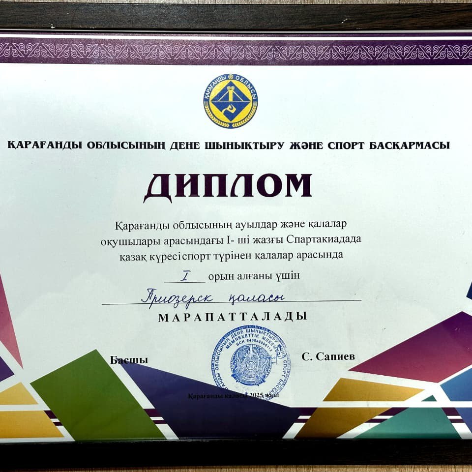 2025 жылдың 26 - 29 қазан күндері Қарағанды қаласында Қарағанды облысының ауылдар және қалалар оқушылары арасында І - ші жазғы Спартакиадасы өтті. Спартакиадаға 7 - 9 сынып оқушылары қатысты. Аталған жарыста обласымыздан жалпы 6 қаладан келген палуандар 10 салмақ дәрежесінде күш сынасты. Қаламыздың «Достық» балалар және жасөспірімдер» шығармашылық орталығы ҚМҚК Қазақ күресі үйірмесі палуандары командалар арасында топ жарып шығып, жүлделі І орынды алды.
