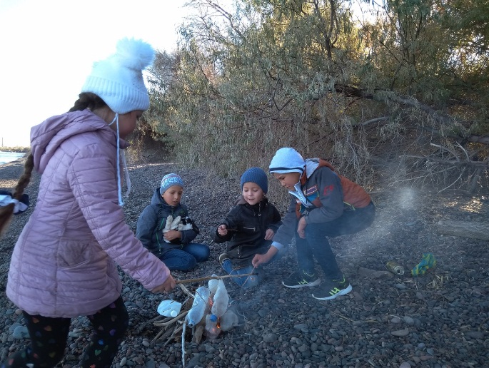 Табиғи ландшафты тазарту үшін топ қоқыстарды жиналып өртеді.