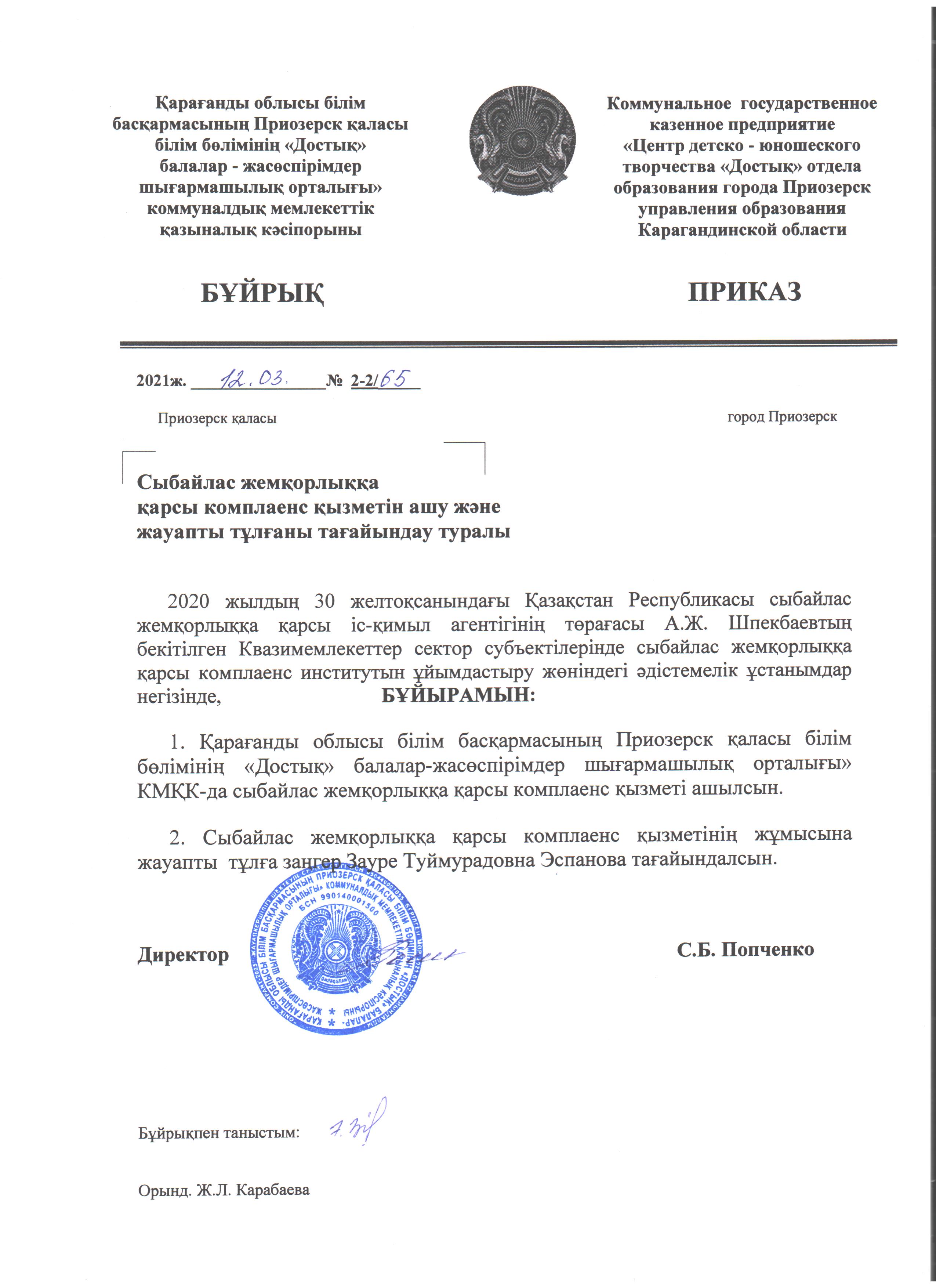 КГКП «Центр детско-юношеского творчества «Достық»» отдела образования города Приозерск управления образования Карагандинской области